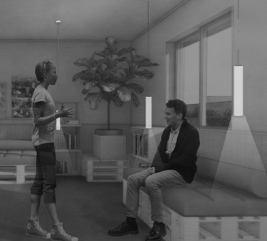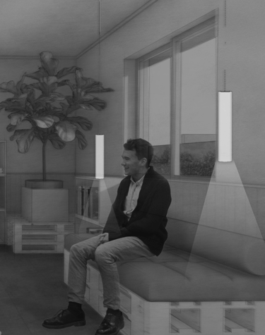 Dans l’espace de repos, j’ai choisi des suspensions minimalistes, à la fois fonctionnelles et polyvalentes, qui assurent un confort lumineux optimal. Cette ambiance douce et ciblée favorise notamment la lecture des ouvrages mis à disposition, ou simplement la détente.