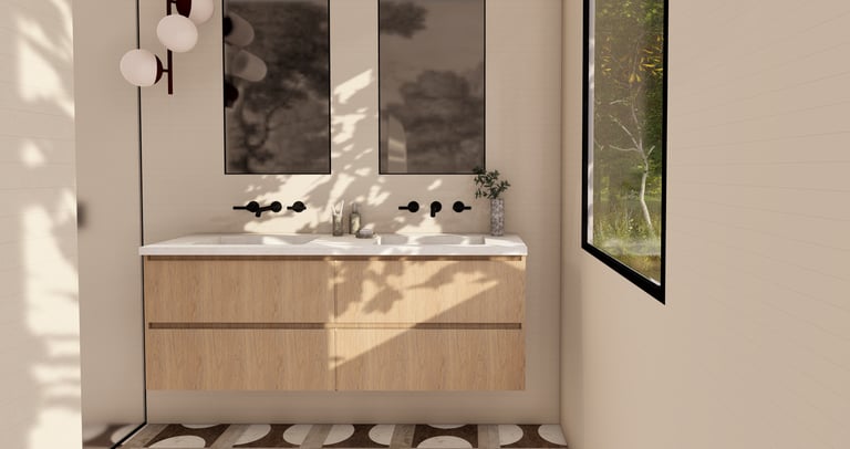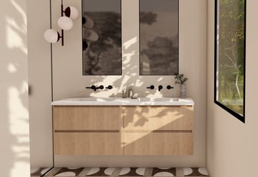 La salle de bain privative, pensée comme une extension naturelle de la chambre, combine fonctionnalité et esthétisme. Matériaux nobles, finitions soignées et lignes épurées en font un véritable espace de bien-être, conçu pour allier confort et raffinement.
