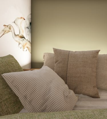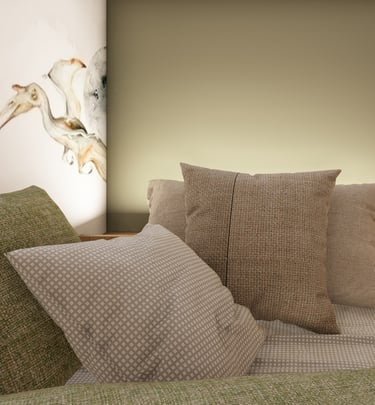 Le cœur de la rénovation repose sur des lits superposés sur-mesure, optimisés pour offrir un couchage confortable. Leur design s’intègre parfaitement à l’ambiance de la pièce, où les teintes beige et vert créent une atmosphère douce et naturelle.